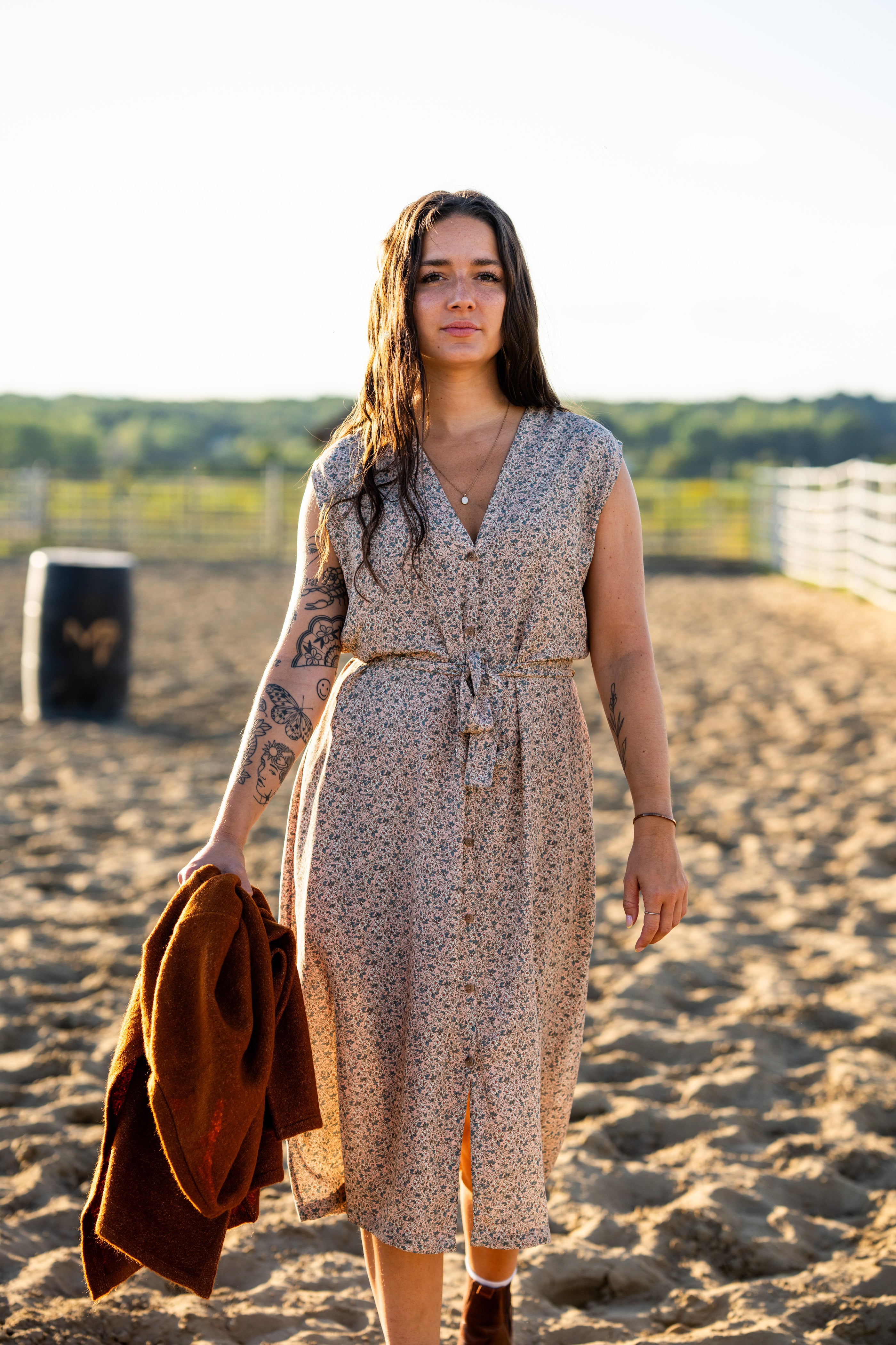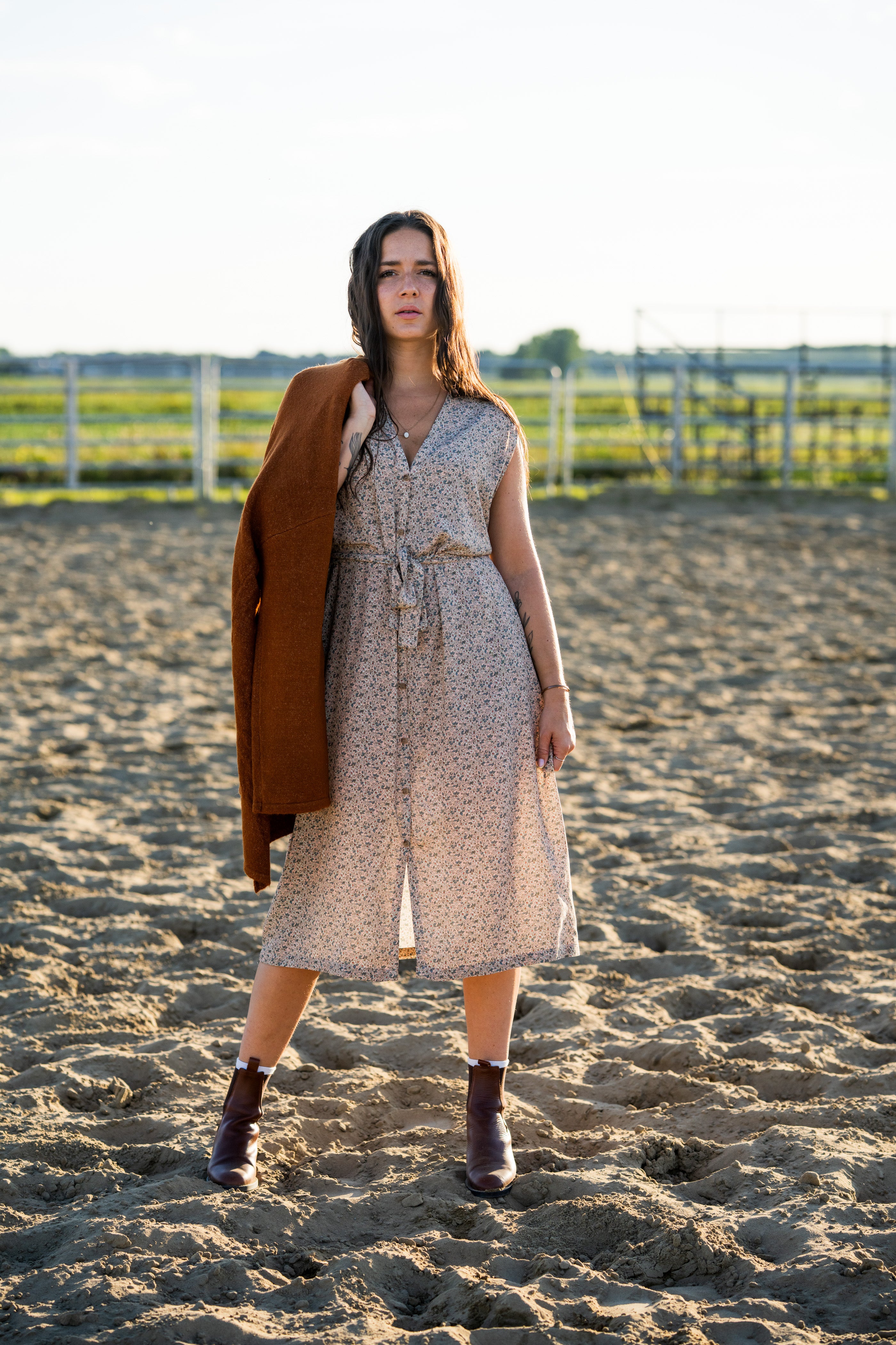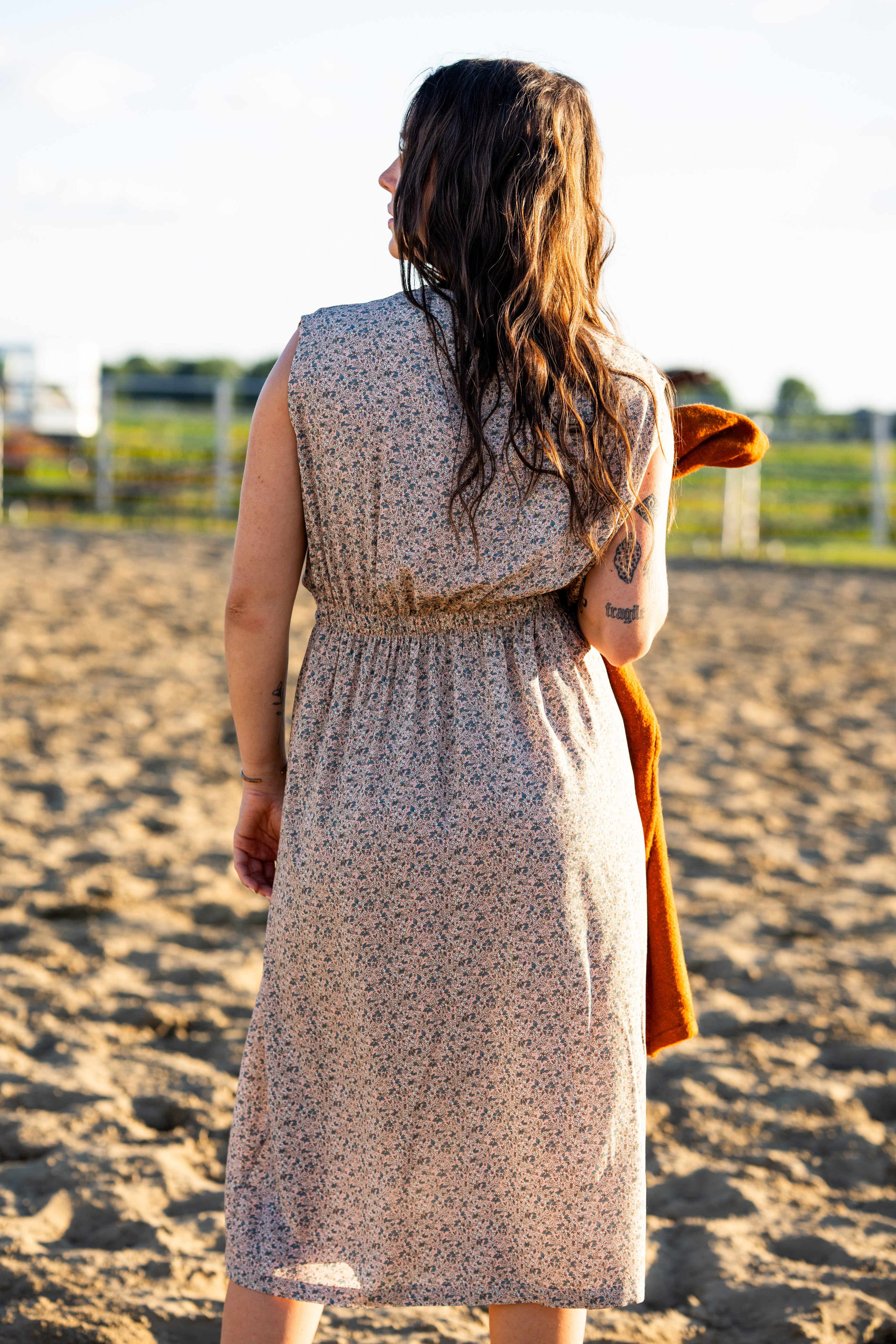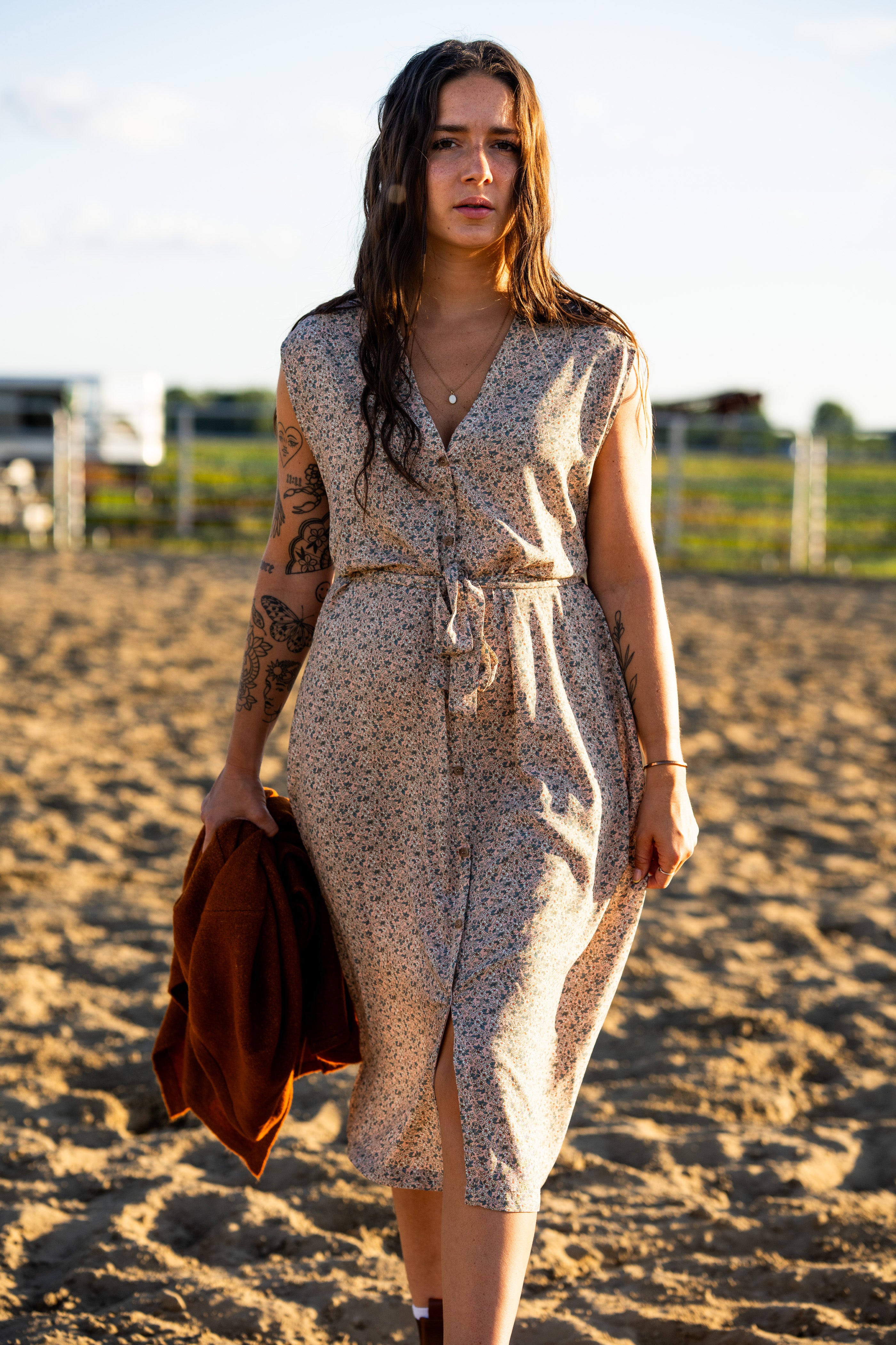 This straight-cut, button-down dress strikes the perfect balance between structure and ease. Sleeveless yet designed to gently cover the shoulders, it offers a clean, polished silhouette that transitions seamlessly through the seasons.