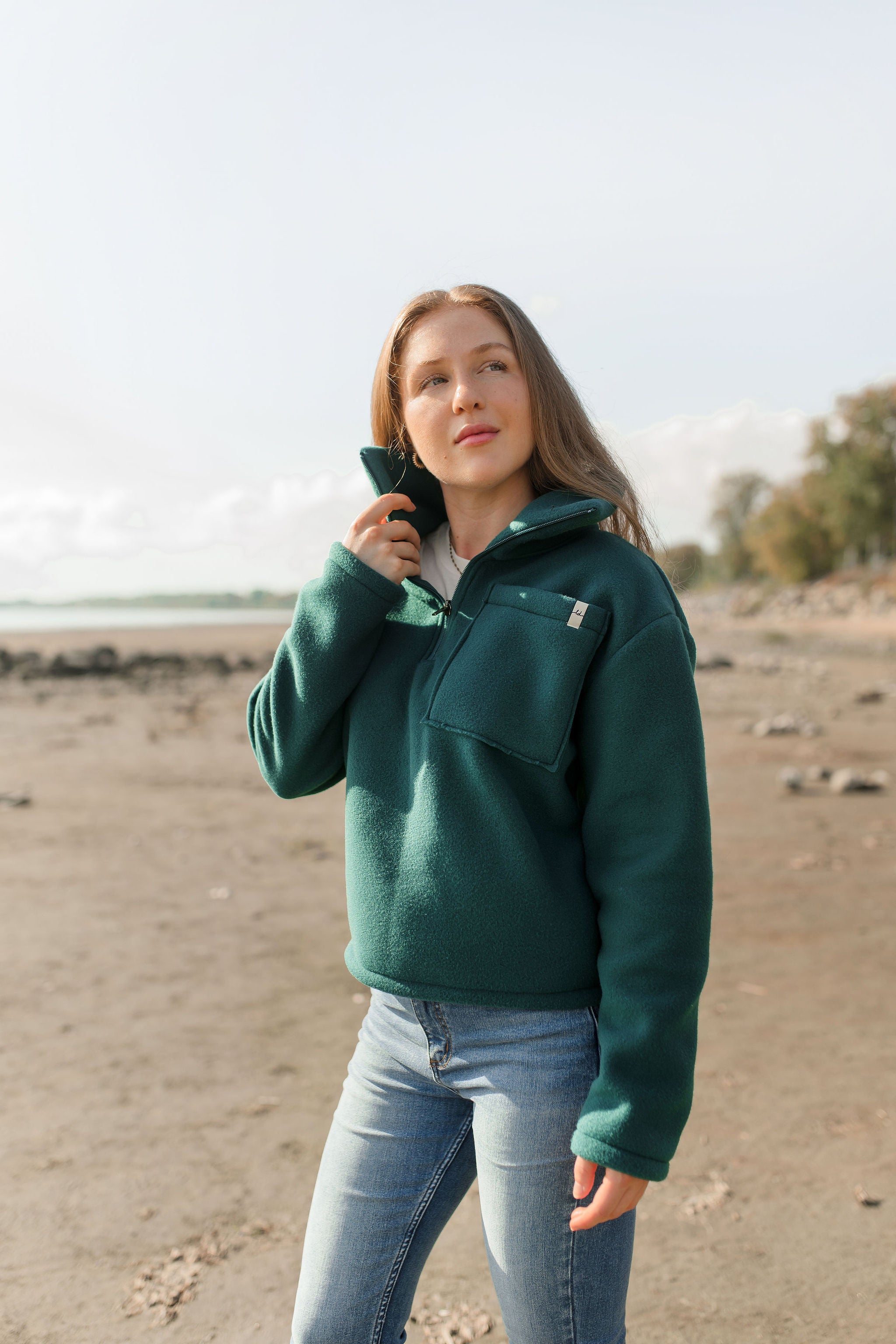 Our fleece are knitted from quality fibers, in small productions, locally in Quebec, supporting our local manufactures.