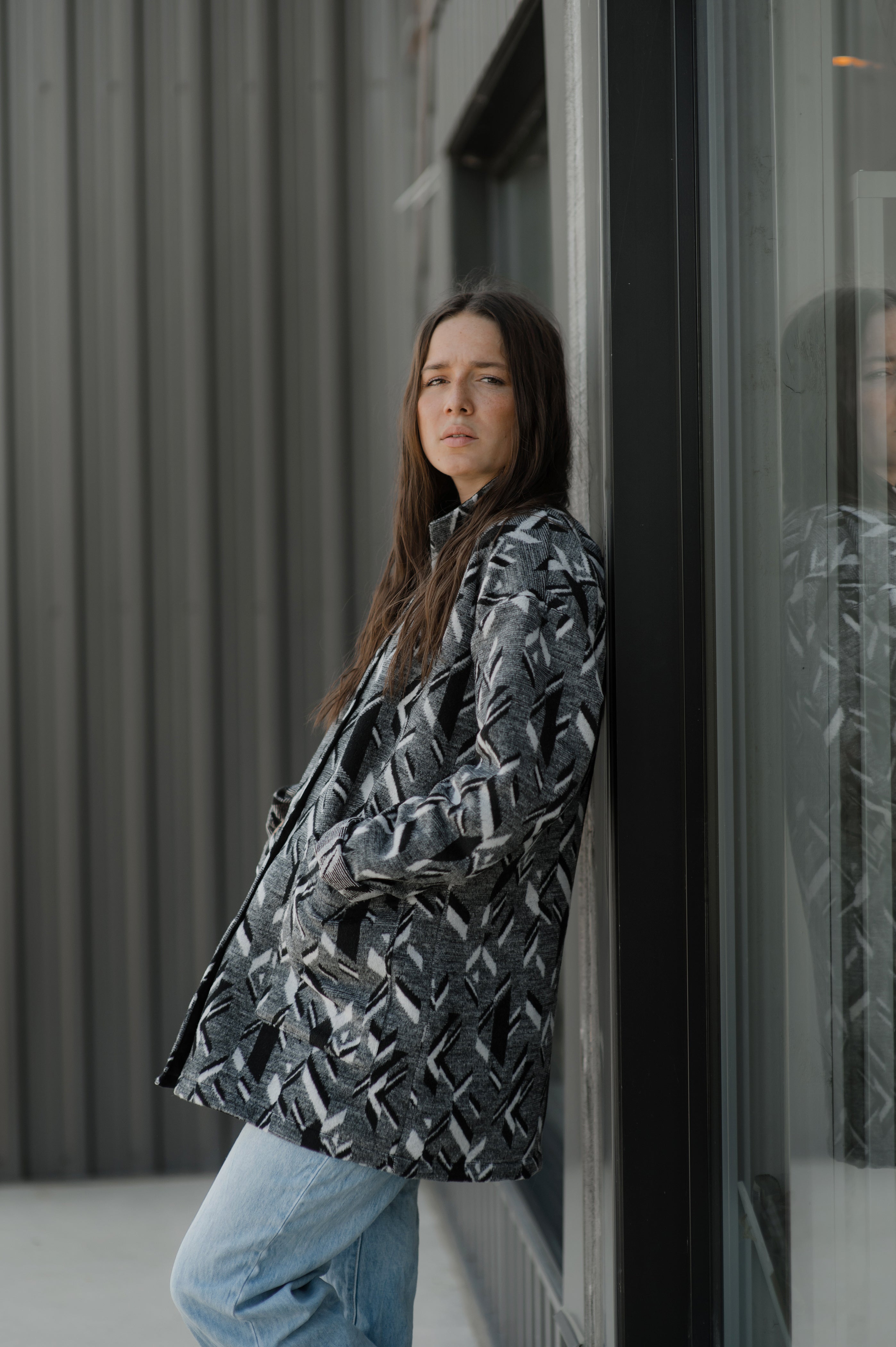 The Kaila jacket is the perfect piece for fall weather. Made from 100% polyester jacquard fabric, it’s soft, warm, and comfortable. Its geometric pattern adds a unique and modern touch to your look.