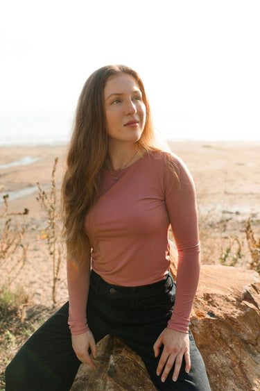 Featuring long sleeves, a round neckline, and a high collar, this simple and classic piece easily transitions from casual to chic. An essential you’ll reach for again and again.