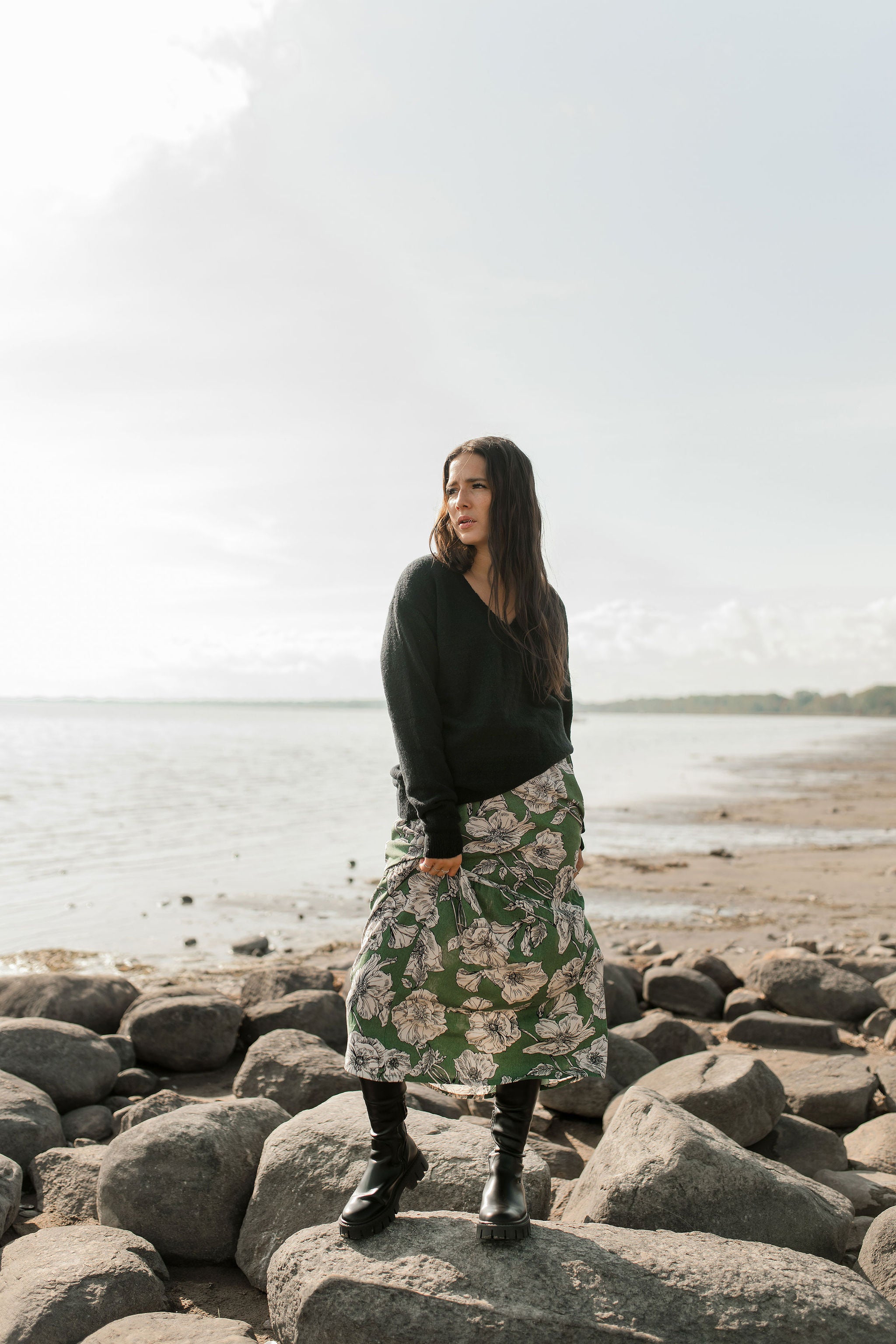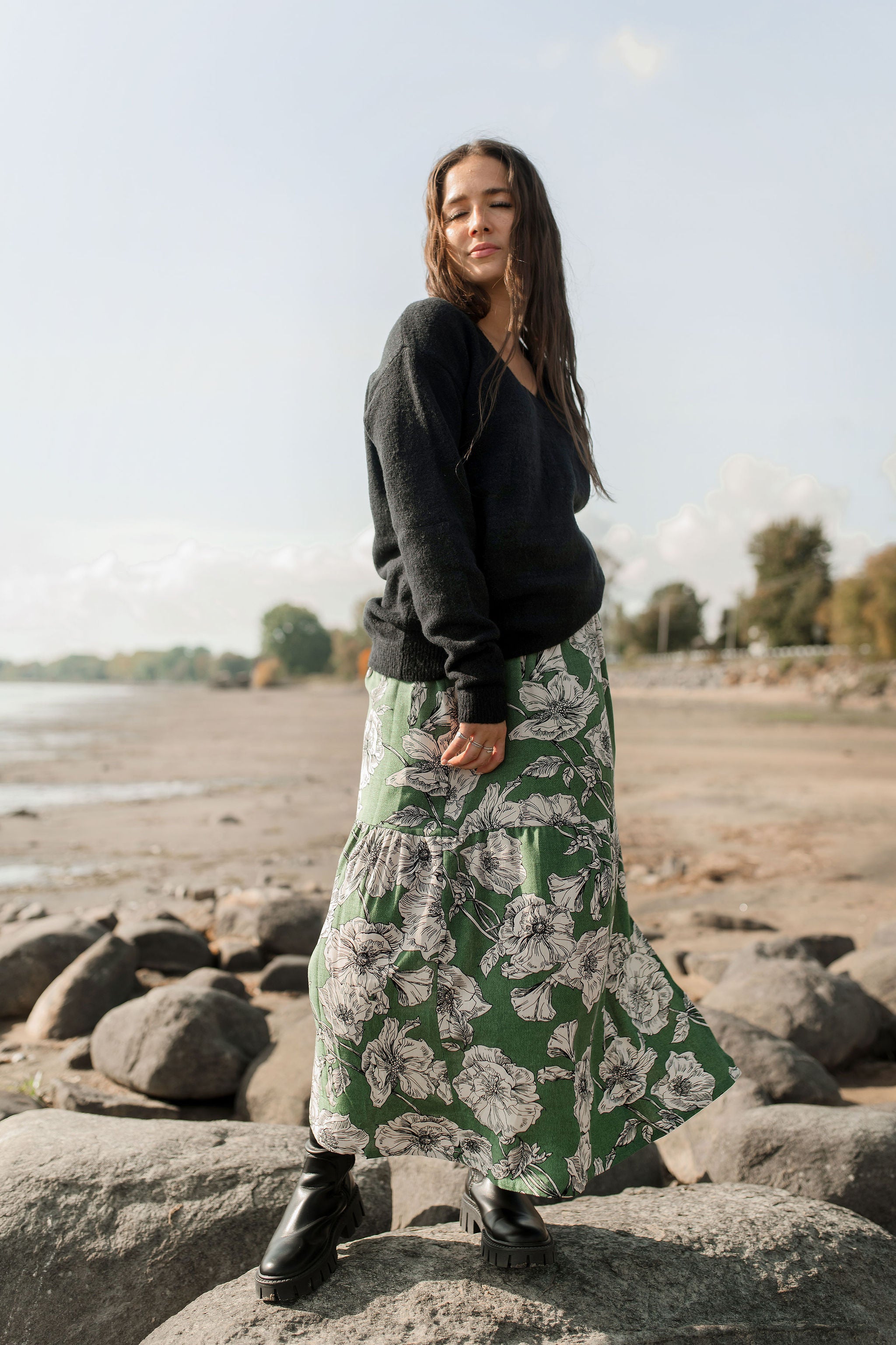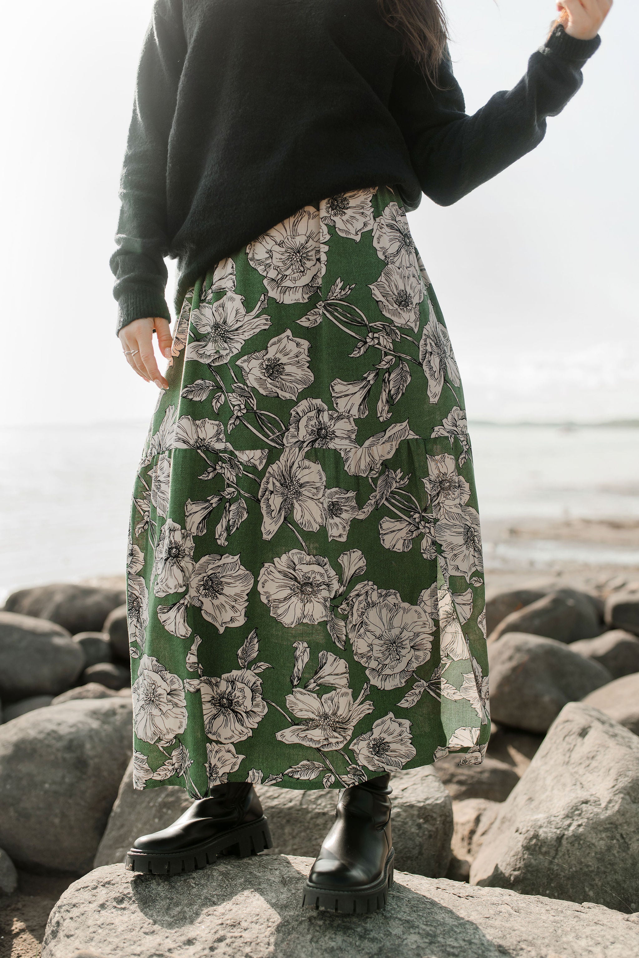 This maxi skirt is feminine and flowing. It features a ruffle at the hem and a front slit for movement and a touch of elegance. The elastic waistband ensures a comfortable fit that flatters all body shapes. Made of 100% polyester fabric, which doesn’t wrinkle.