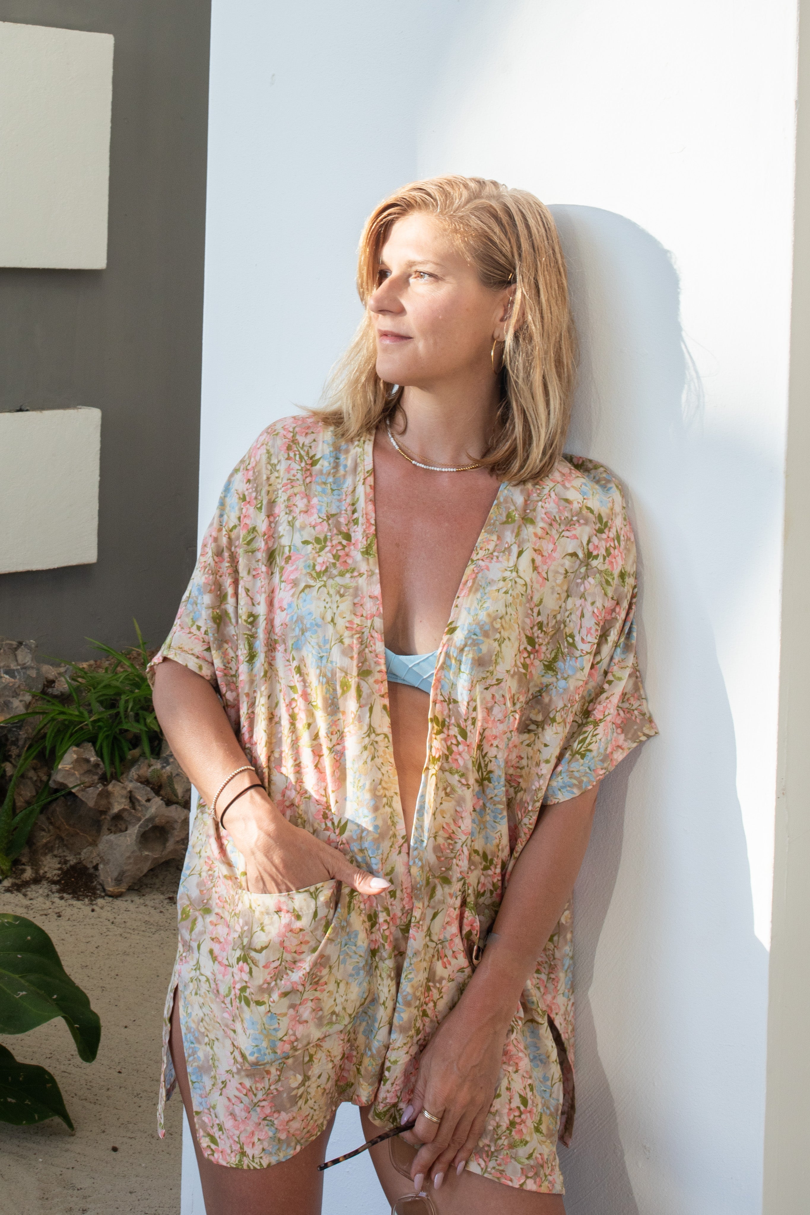 Notre kimono est l’allié parfait des journées d’été… et des escapades ensoleillées. Avec sa coupe droite, sa longueur aux hanches et ses fentes sur les côtés, il offre une silhouette fluide et flatteuse. Ses deux poches à l’avant ajoutent une touche pratique qu’on adore au quotidien.