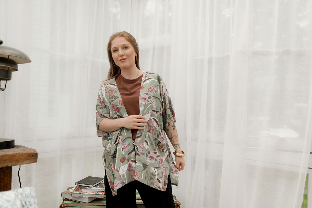 Notre kimono est l’allié parfait des journées d’été… et des escapades ensoleillées. Avec sa coupe droite, sa longueur aux hanches et ses fentes sur les côtés, il offre une silhouette fluide et flatteuse. Ses deux poches à l’avant ajoutent une touche pratique qu’on adore au quotidien.