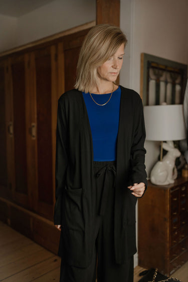 Un essentiel du quotidien, ce cardigan est facile à agencer et simple à emporter partout avec vous. Glissez-le dans votre sac, gardez-le dans la voiture ou posez-le sur vos épaules : c’est la couche polyvalente que vous serez heureuse d’avoir, peu importe ce que la journée vous réserve.