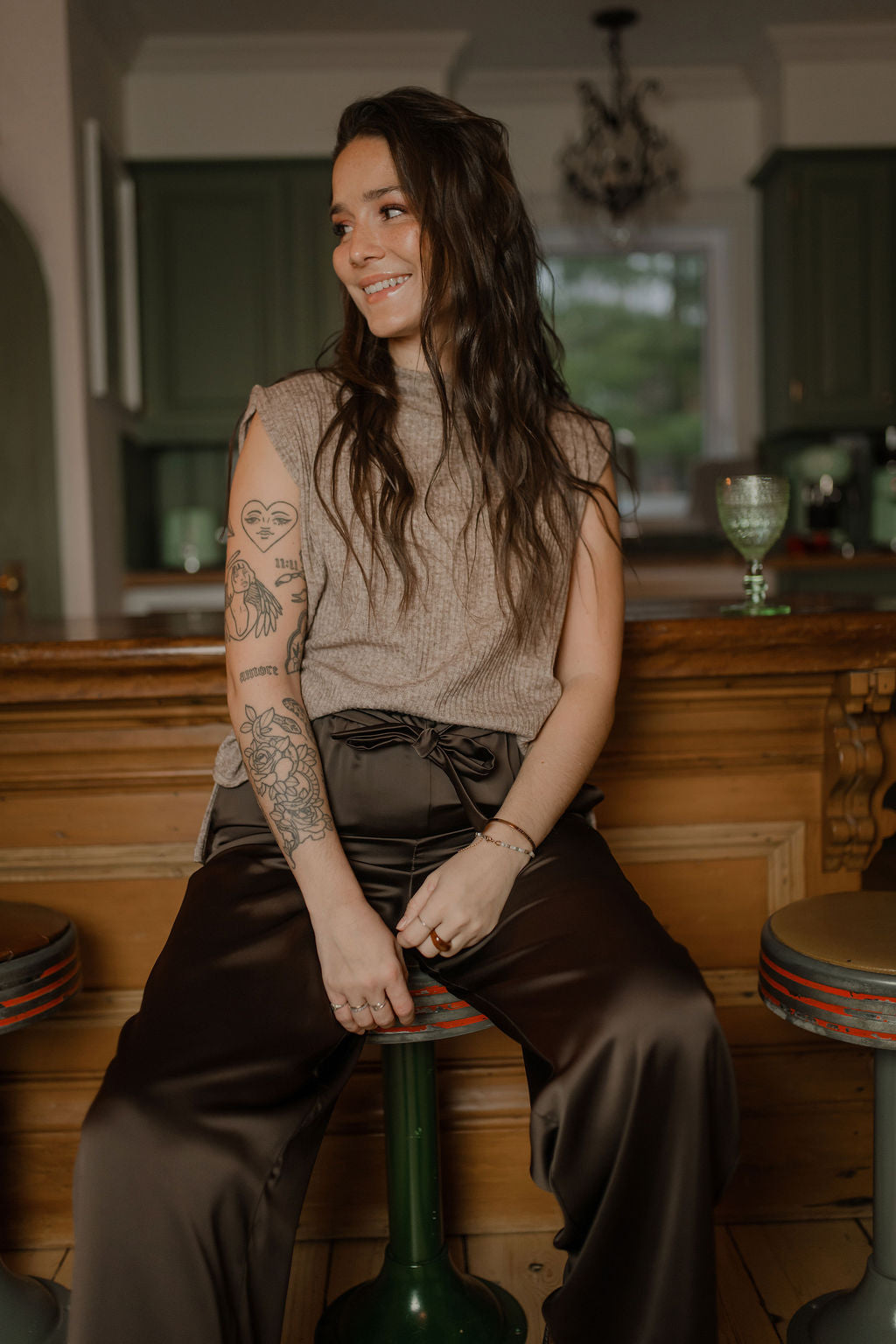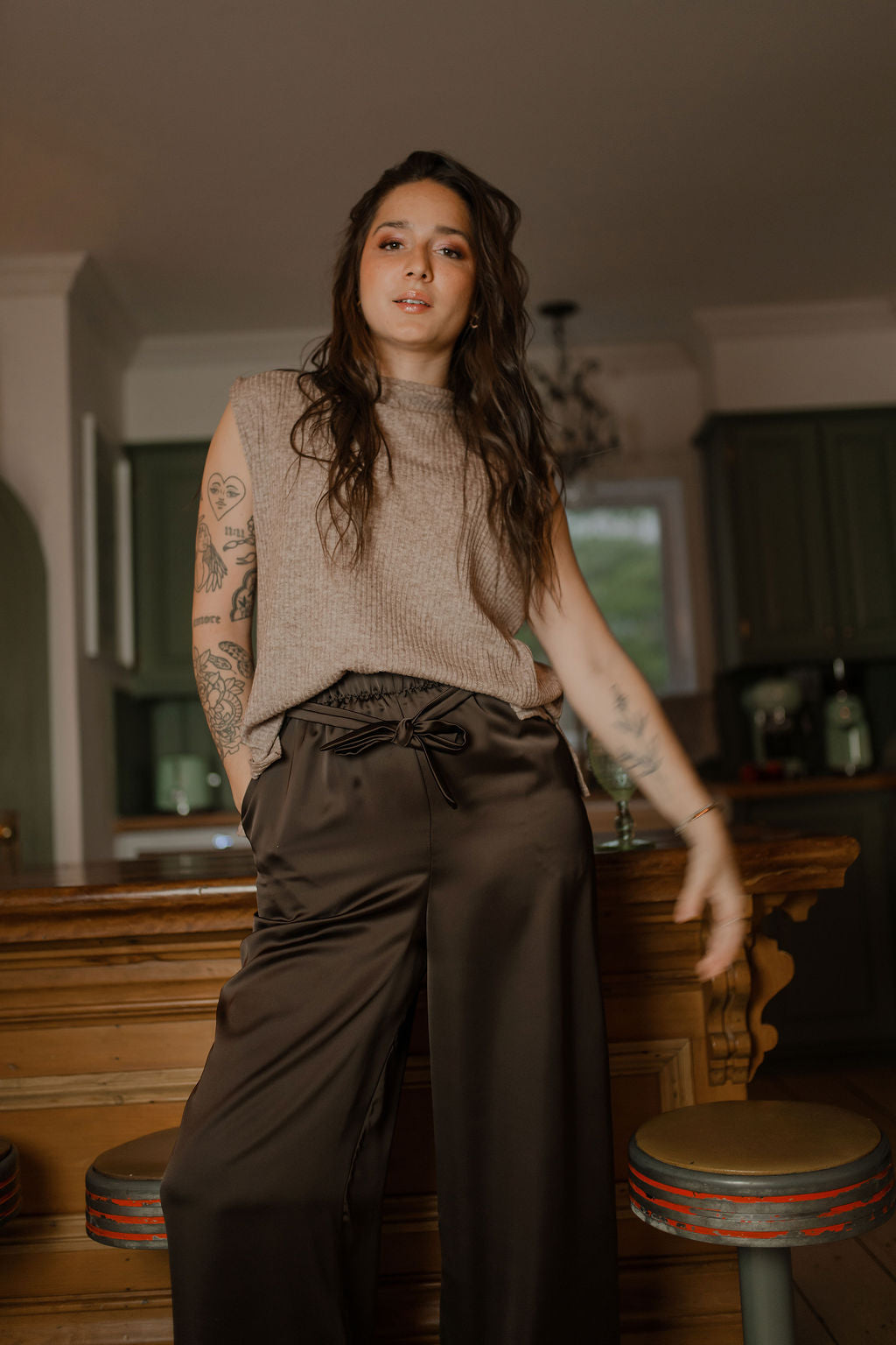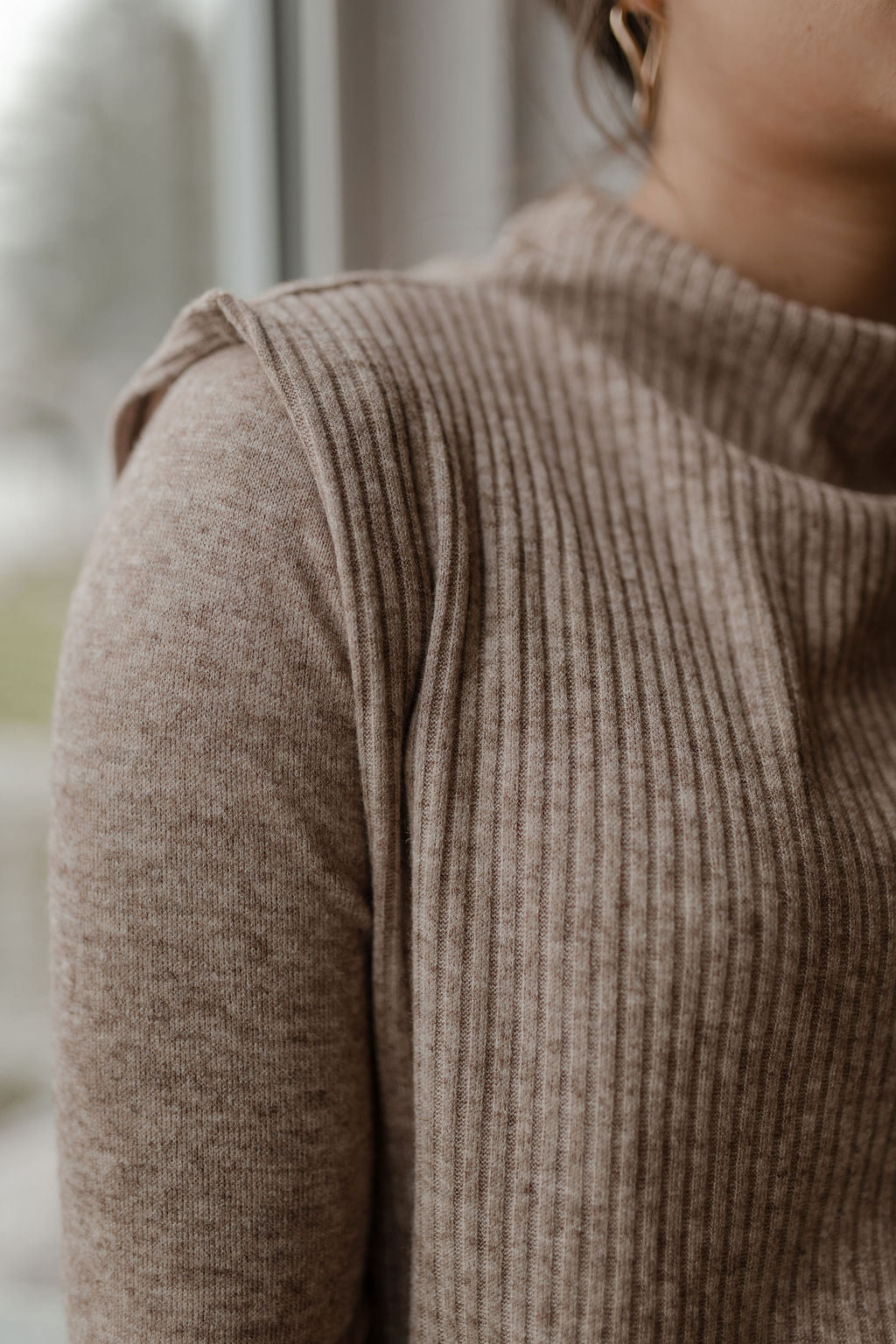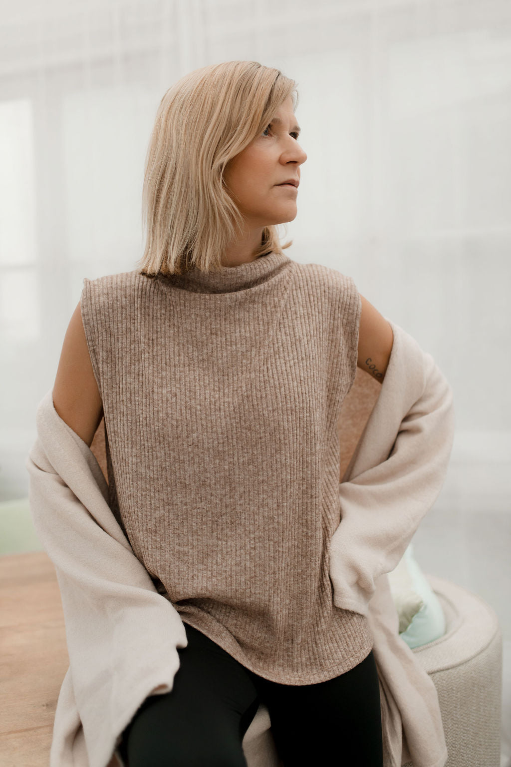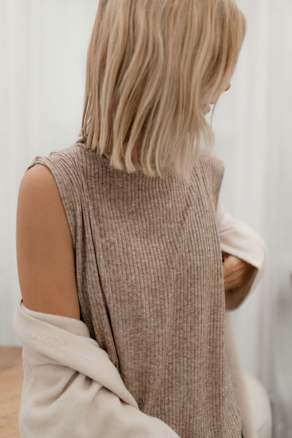 Voici le débardeur Sienna, un haut en tricot nervuré qui se combine parfaitement avec notre manche longue Lia. Avec son col cheminée, sa coupe sans manches et sa longueur aux hanches soulignée par de petites fentes latérales, il se porte aussi bien seul qu’en superposition avec le manche longue assorti. Sa texture nervurée lui donne du caractère et le rend polyvalent : facile à porter chic, ou plus décontracté avec un jean. Un indispensable qui s’adapte à toutes les occasions.